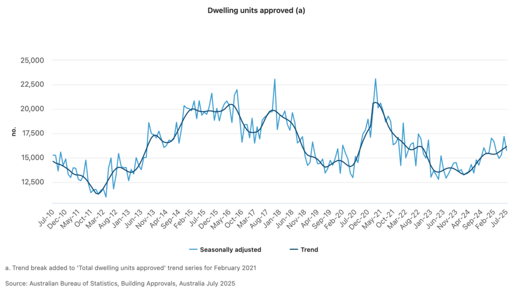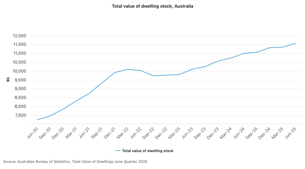 The 2021 Census shows why Australia’s housing market tends to be steady, even when the economy wobbles. Who owns homes: About two-thirds of households are owner-occupiers (31% own outright, 35% with a mortgage). Owners usually sell only if they have to, so they don’t flood the market in a downturn. Type of housing: Around 70% of dwellings are separate houses, which take longer to build than apartments. That makes it hard to suddenly oversupply the market. Vacant homes aren’t spare supply: Over 1 million homes were unoccupied on Census night, but many were holiday homes, properties for sale, or between tenants, not instantly available housing. Household growth: More households form each year as the population grows, keeping steady demand for both rentals and owner-occupied homes. Crashes usually need lots of forced sellers or sudden oversupply. The Census data shows Australia’s housing structure makes both less likely. City-by-City Picture Right now, in late 2025, Australia’s property market is in a mixed position. Some cities are still seeing strong growth, while others have slowed: Sydney & Melbourne: Prices are growing only slightly after cooling off in the last two years. Affordability is stretched, so buyers are cautious. Brisbane & Adelaide: Still recording healthy growth, boosted by strong migration and relatively cheaper homes compared to Sydney. Perth: The standout performer, with double-digit growth thanks to population inflows and a shortage of new homes. Three main forces are shaping the market: Interest rates: The Reserve Bank of Australia (RBA) has started cutting rates, making loans a little cheaper after years of hikes. Supply: Not enough new homes are being built. Delays and high construction costs mean supply struggles to meet demand. Demand: Population growth, especially from overseas migration, is driving strong competition for both rentals and homes to buy. In short, demand is high, supply is low, and interest rates are becoming more supportive. These factors are keeping prices up for now.